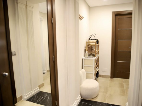 The apartment comprises an entrance hall, kitchen with utility room, living-dining room, 1 bedroom, 1 en-suite bathroom, 1 toilet, dressing room, and a spacious covered terrace, ideal for enjoying the Costa del Sol climate year-round.