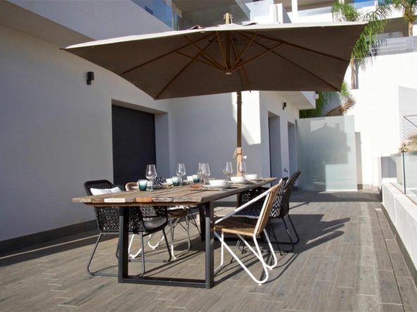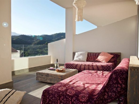 This modern 2 bedroom, 2 bathroom apartment is located in the **Ocean Hills** urbanization in Estepona. With stunning views of the surrounding mountains and hills, the apartment combines contemporary design with a serene natural setting. The spacious living areas are light and airy, perfect for enjoying the peaceful surroundings.
