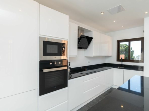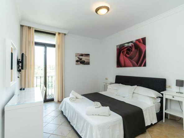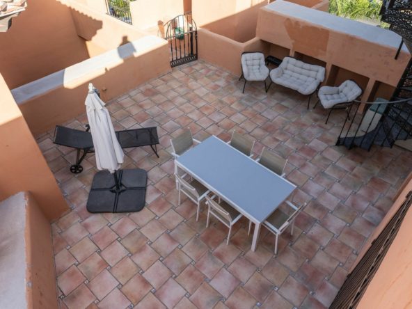 The apartment features a bright and airy open-plan living and dining area, two generously sized bedrooms with fitted wardrobes and air conditioning throughout, and not just one but three private terraces—including a stunning large rooftop solarium, perfect for sunbathing, entertaining, or enjoying beautiful views of the Mediterranean climate.