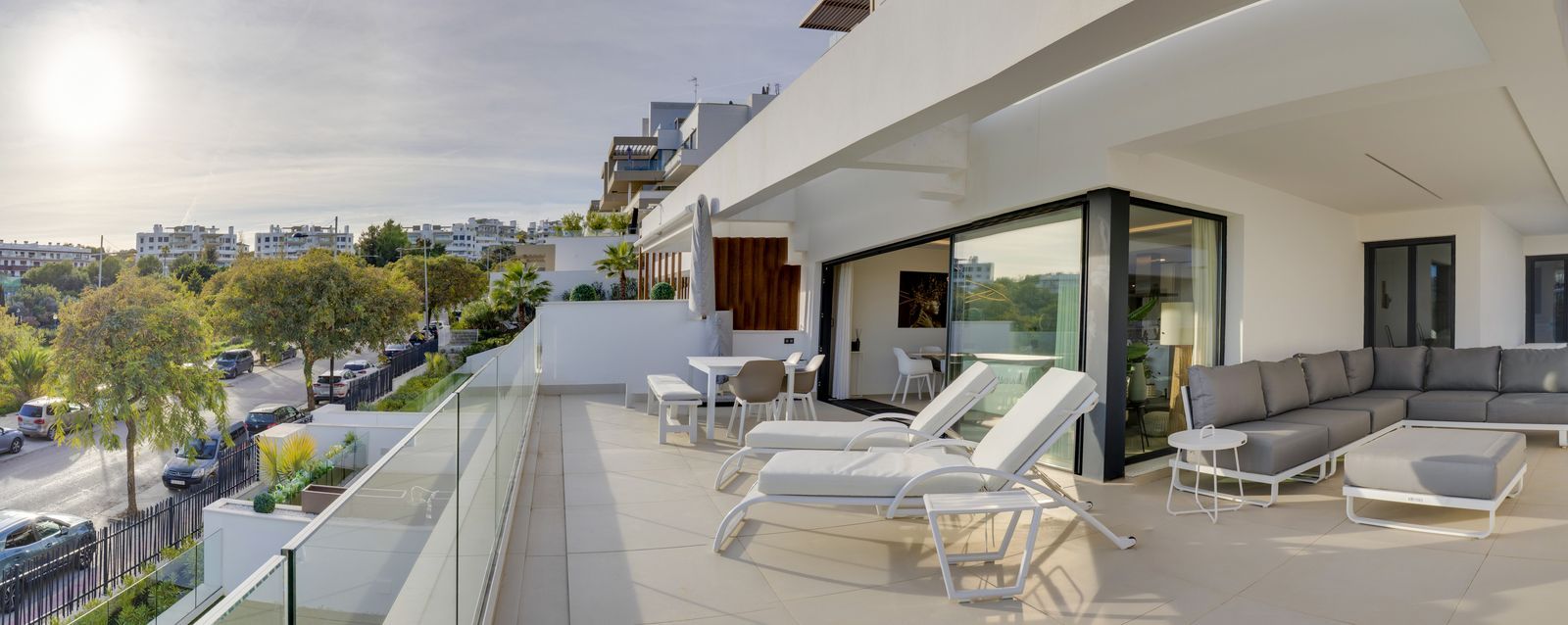 One of the outstanding features of this property is the exceptionally large private terrace, ideal for outdoor dining, entertaining, or relaxing in the Mediterranean climate.