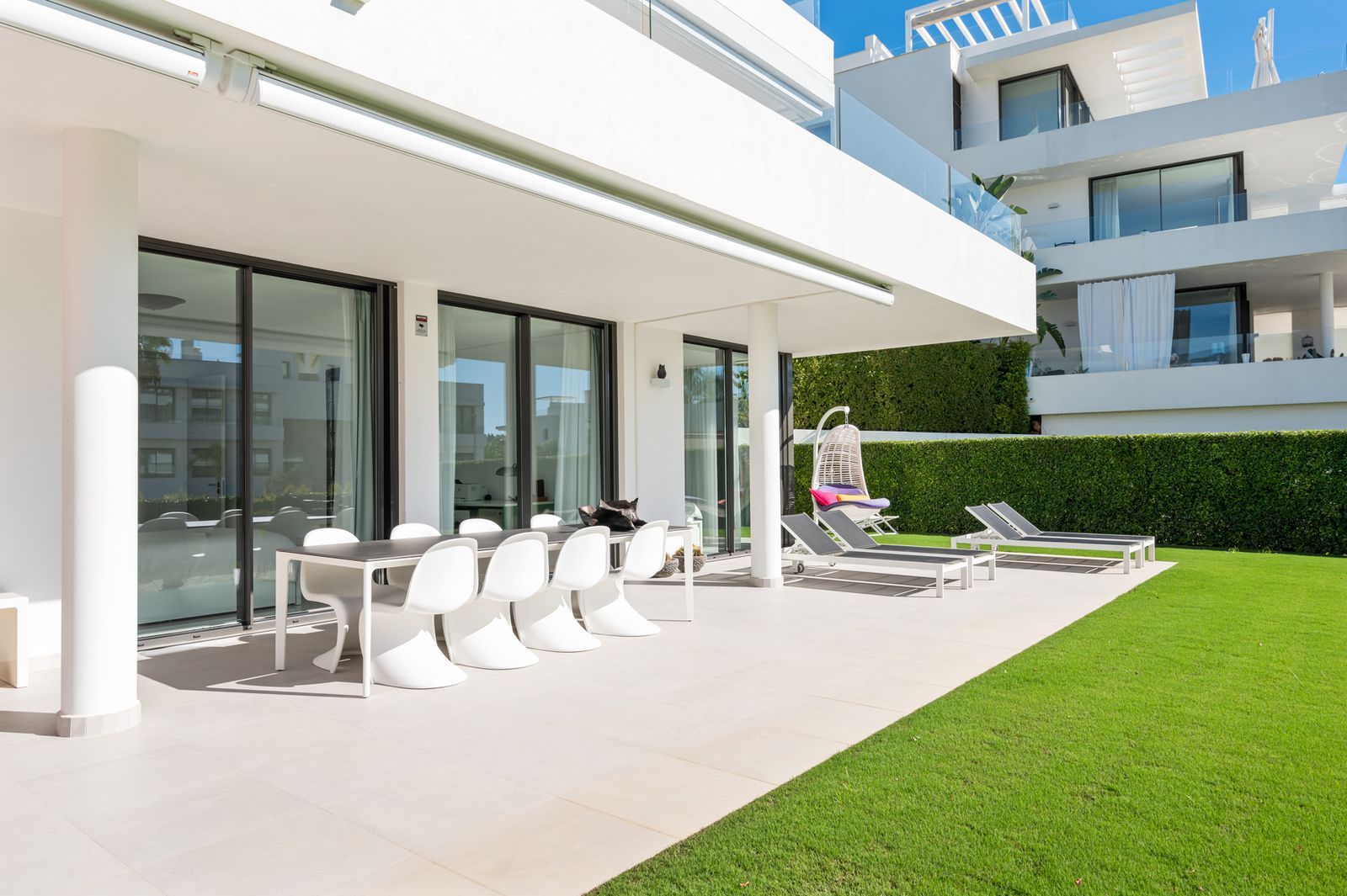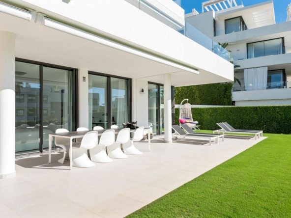 Within this project is available a beautifully finished ground floor apartment equipped with 3 bedrooms, 2 bathrooms. Here the 3 bedrooms all open onto the terrace and adjoining garden of no less than 333 m². In addition, this apartment features an open layout where the kitchen and living room also flow seamlessly into the outdoor areas. This fact ensures that the Mediterranean climate can be drawn into the entire house throughout the year.