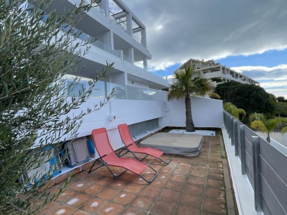Beautifully situated ground floor apartment in Ocean Hills. South to west facing (sun all day), magnificent views to the sea and mountains, quiet and private. Close to amenities and the golf of La Resina.