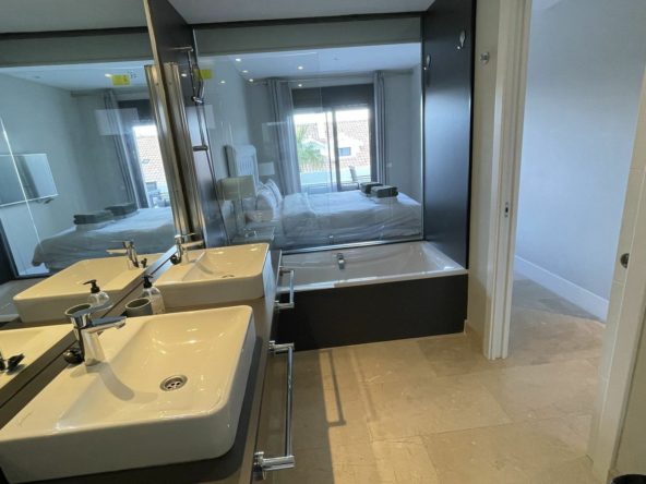 Master bedroom en suite and one guest bedroom with separate bathroom; both bedrooms leading to a terrace with beautiful partial sea views, Gibraltar and mountains.