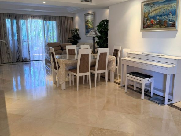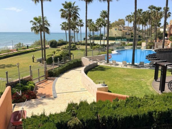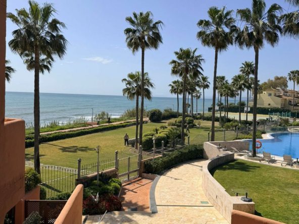 Elegant three-bedroom, two-bathroom apartment with ocean views, located directly on the beachfront in Estepona’s New Golden Mile, one of the most sought-after areas on the Costa del Sol.