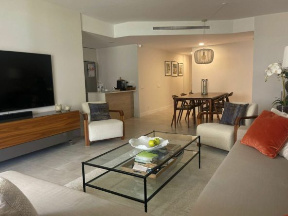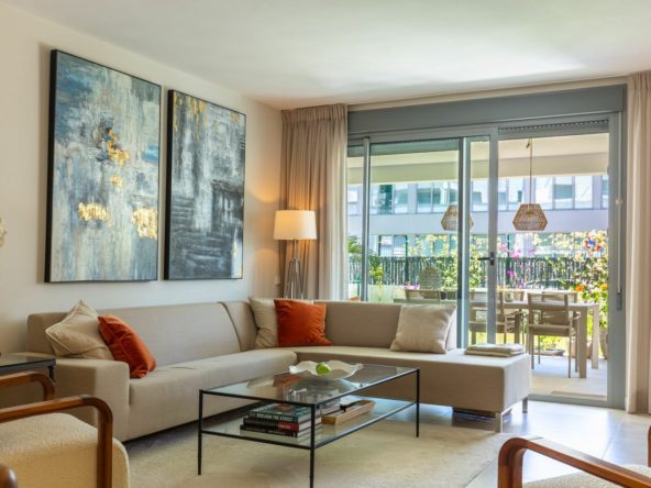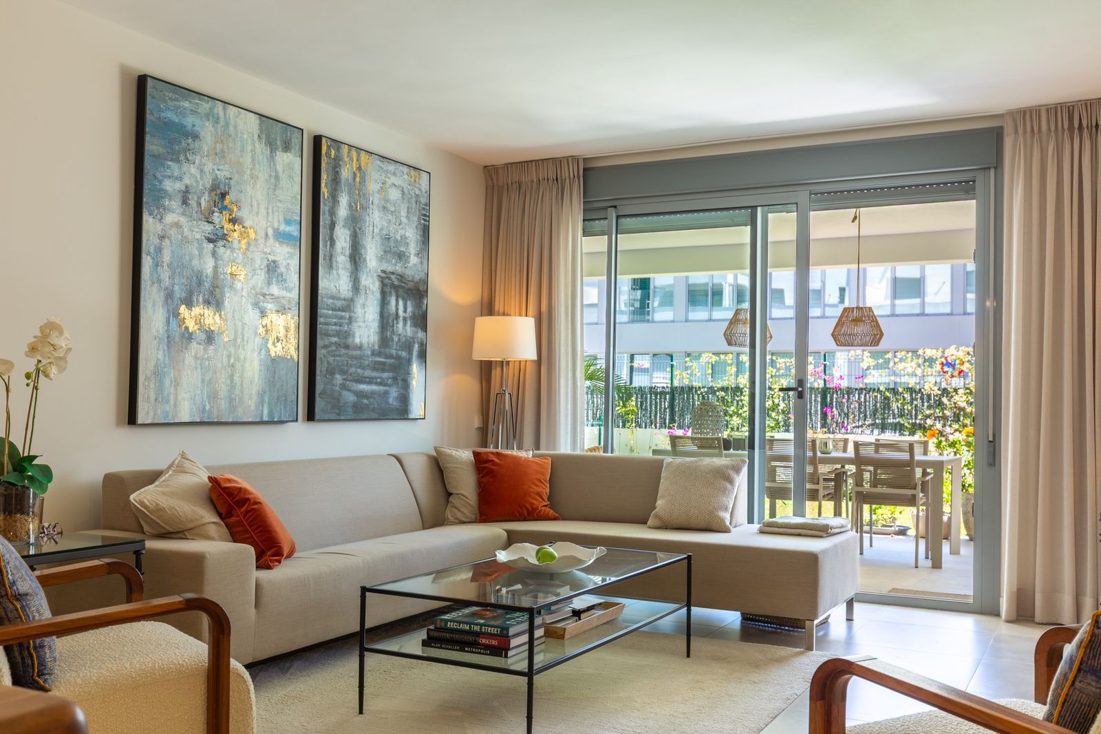 This stunning 3-bedroom, 2-bathroom apartment offers a perfect combination of style, space, and comfort. Featuring a large private garden and a large covered terrace, it’s ideal for relaxing, entertaining, or simply enjoying the Mediterranean climate year-round. Inside, you'll find a modern, fresh interior with a spacious layout, high-end finishes, and a fully equipped modern kitchen with a separate utility area.