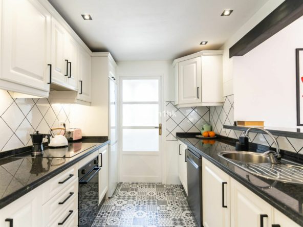 El Paraiso – Just steps behind the chic D-Alicia Café and only 300 m from serene, almost-private beaches, this avant-garde three-bedroom, two-bathroom penthouse embodies modern Mediterranean sophistication. Encompassing approximately 155 m², it showcases bold, gallery-style interiors where striking black-and-white contrasts, wood floors, and abundant natural light create an ever-changing exhibition of style. A sleek black-granite kitchen flows seamlessly into an open living-dining area designed for chic entertaining, while two spa-inspired baths—one featuring a deep soaking tub—offer indulgent comfort. Crowned by a private Saltillo-tiled rooftop terrace, the residence invites sunset dinners, starlit gatherings, and effortless al-fresco living. Surrounded by acclaimed restaurants, wine bars, and designer boutiques, this penthouse is more than a home: it’s a curated lifestyle for the sophisticated buyer seeking elegance, edge, and everyday inspiration.