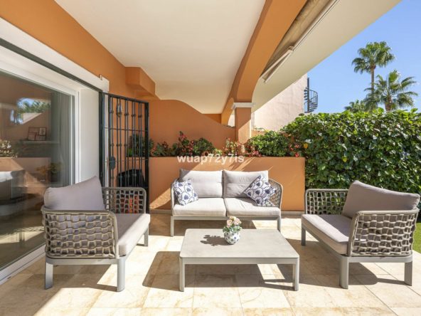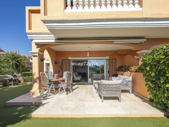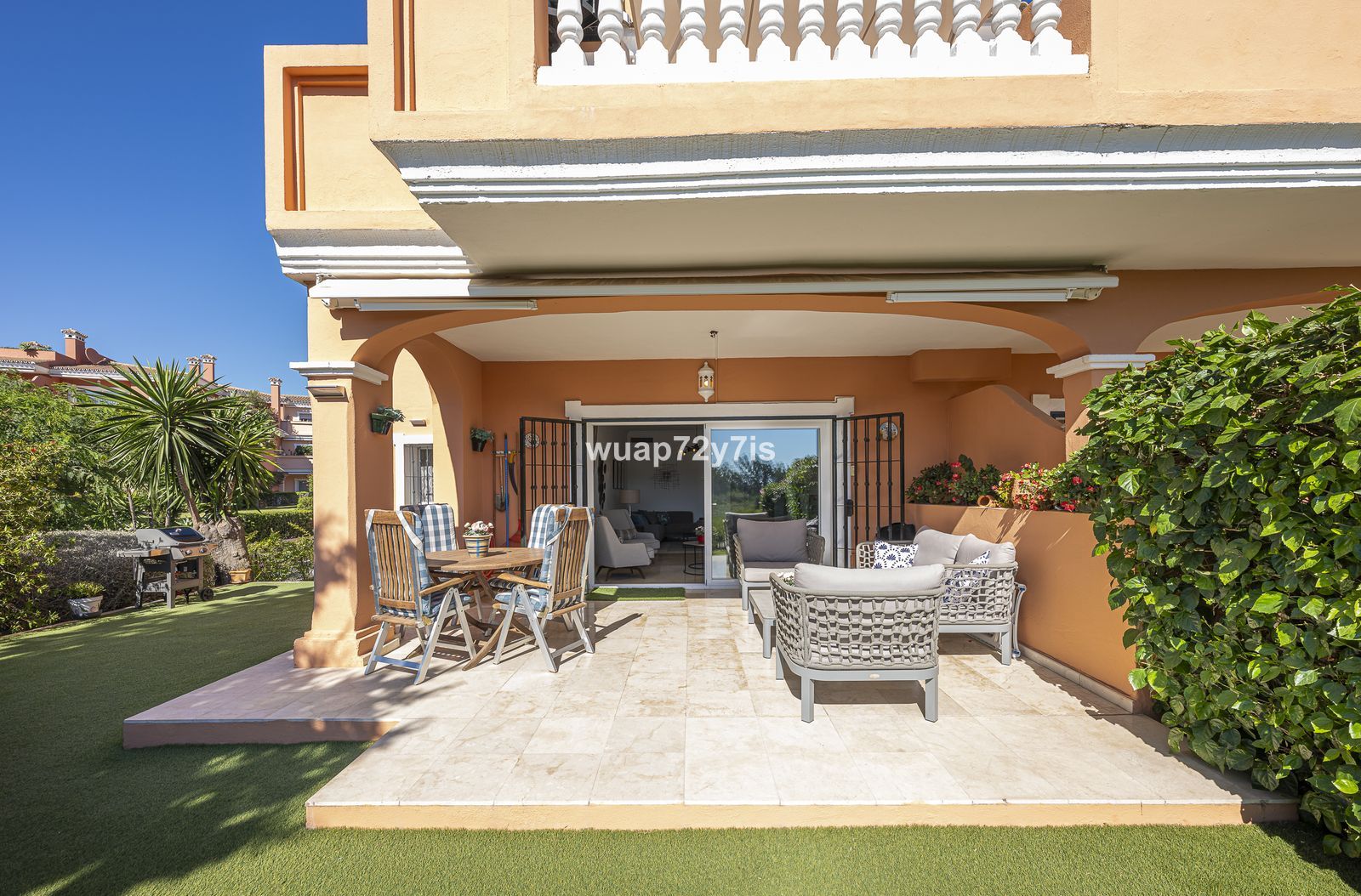 This beautifully presented 2-bedroom, 2-bathroom ground floor apartment is located in the exclusive Park Beach community, just steps away from the Mediterranean. Perfectly positioned as a corner unit, it enjoys exceptional privacy, a unique wrap-around garden, and panoramic views stretching across the sea and Gibraltar.
