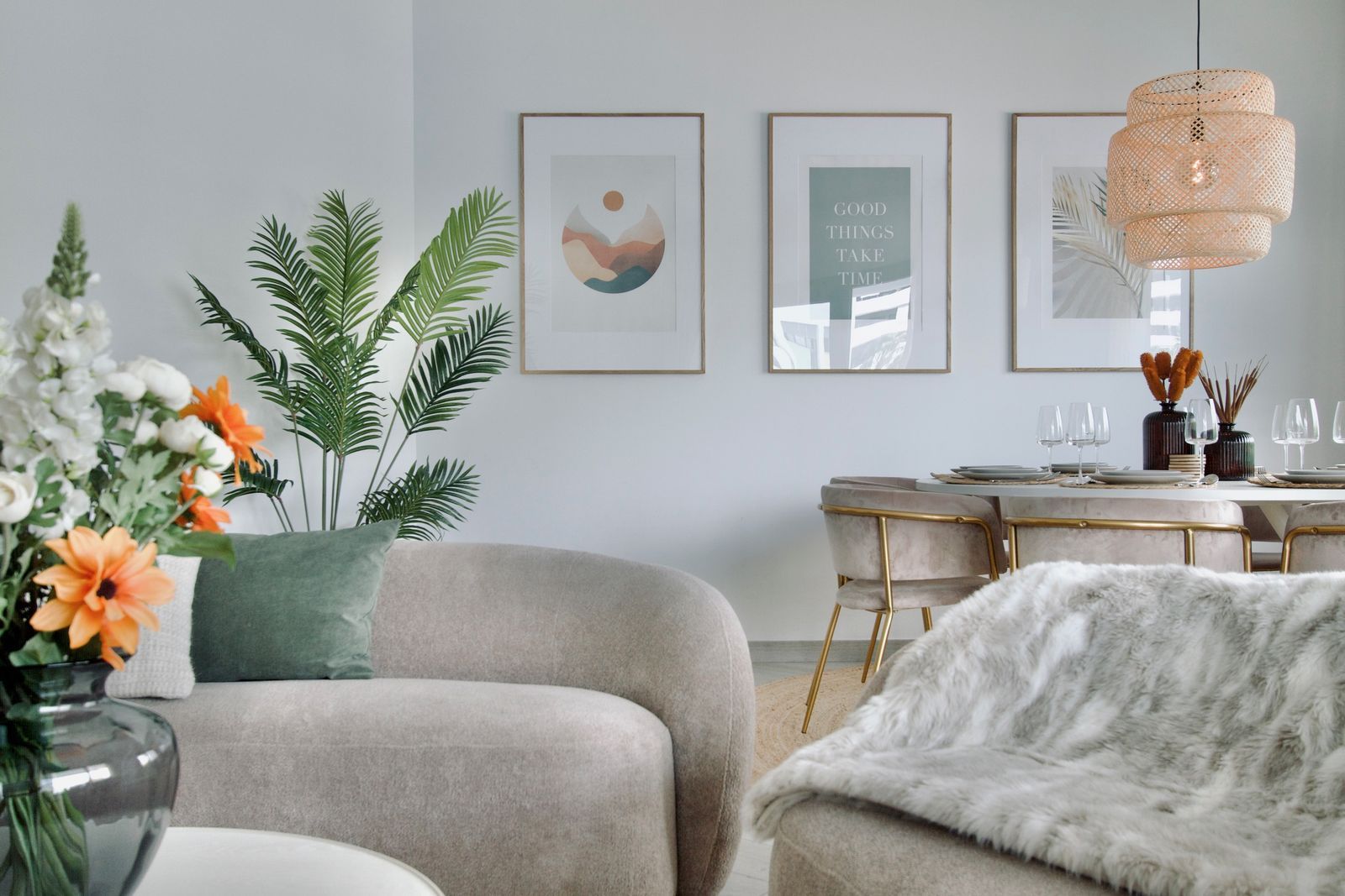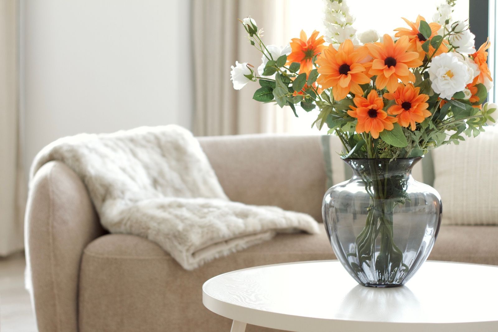 • A bright living room with large windows