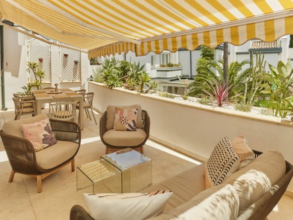 This fantastic property is located in the Frontline Beach urbanization in walking distance to Estepona, offering direct access to the sea and beach.