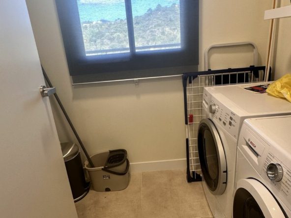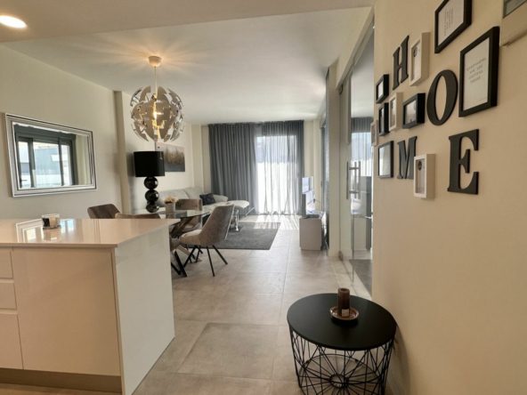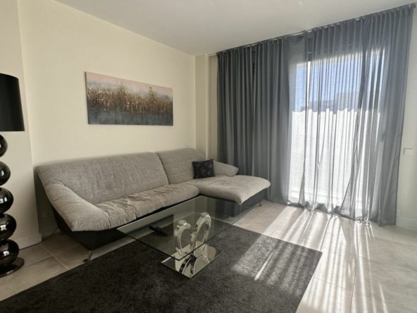 Situated on the first floor, this fully furnished apartment features an elegant living room that opens to a terrace, offering lovely views of the pool area and garden. It includes a modern, fully equipped kitchen, two double bedrooms with en suite bathrooms, fitted wardrobes, and balconies. Additional amenities include a laundry area, a parking space in the underground car park and a storage room.