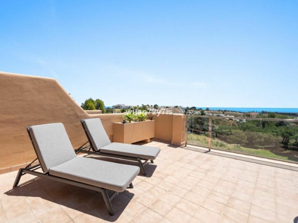 This beautifully renovated and fully furnished top-floor penthouse is located in the peaceful and up-and-coming Selwo area of Estepona, within the La Resina Golf resort.