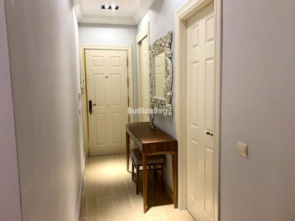 The apartment has 2 bedrooms and two bathrooms, the main one en suite, with a total area of 141m2, with modern decoration and high-quality furniture. It is bright, with light pastel colors, comfortable and equipped with all the comforts that you should offer in this category.