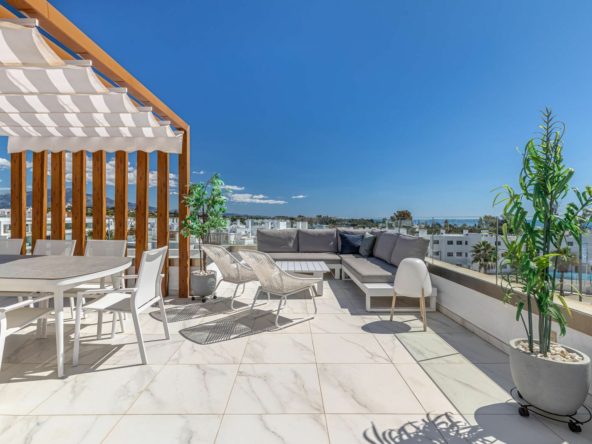 This modern and stylish apartment in Cancelada, perfectly located between Marbella and Estepona, offers a fantastic rooftop terrace and prime location! Built in 2020, the property includes two garage spaces and a storage room. Restaurants, shops, supermarkets, and the beach are all within walking distance.