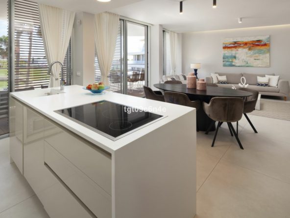 The apartment is divided into: a spacious open-plan living area and kitchen, fully furnished and equipped with high-end Gaggenau brand appliances; from here we access the main terrace with views of the sea, the ideal place to enjoy meals outdoors or simply the wonderful climate of Estepona; 1 master bedroom en-suite; 2 double bedrooms, with a shared bathroom. The 3 bedrooms have access to a second terrace, with sea views.