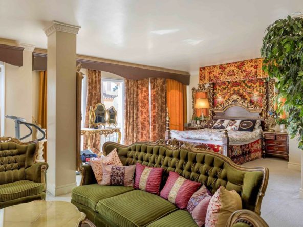 Crowning the residence is the opulent master suite, a sprawling retreat featuring a stately four-poster bed, a sunlit sitting area, and a lavish open-concept bathroom. Here, freestanding tubs and artisanal finishes create a spa-like sanctuary. The additional bedrooms boast ensuite bathrooms adorned with premium details, complemented by a convenient guest powder room nestled between them.