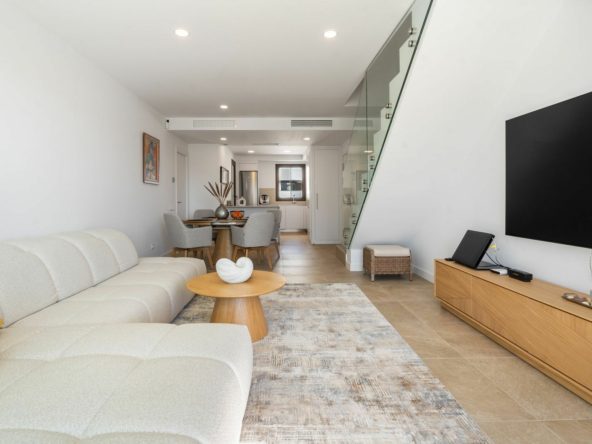 The property features three bedrooms and two modern bathrooms, including a beautiful main suite with direct access to the terrace. A private rooftop solarium offers additional outdoor space with plenty of privacy, ideal for sunbathing or creating your own chill-out area.