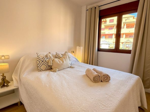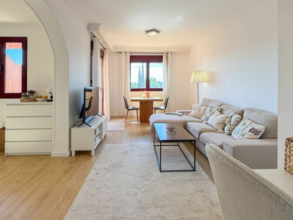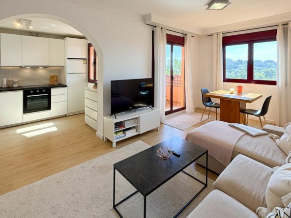 The property is fully furnished and move-in ready, offering one bedroom and one bathroom with a practical layout. The highlight is the south-facing terrace, where you can relax and take in the open views over the golf course, along with small sea views and the backdrop of La Concha mountain.