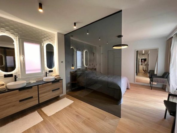 The main entrance floor has an open kitchen, spacious living room, 3 bedrooms and 2 bathrooms.