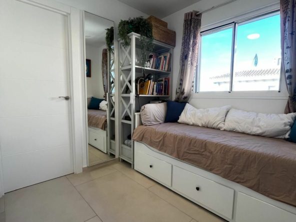 Spanning 100 m², this move-in-ready home on the third floor (with lift) features two spacious bedrooms, two modern bathrooms, a generous terrace for al fresco relaxation, built-in wardrobes, air conditioning, and a desirable south-facing orientation for abundant natural light and warmth. The property includes a private garage and storage room – a rare luxury in such a privileged seafront setting – plus access to the community's lush landscaped gardens, shared swimming pool, and well-maintained facilities. With 24/7 security and a family-friendly atmosphere, Marina Bay offers a serene, exclusive lifestyle in the “Garden of the Costa del Sol.” Holding a tourist license, it's an ideal primary residence, holiday retreat, or savvy investment with strong rental potential.