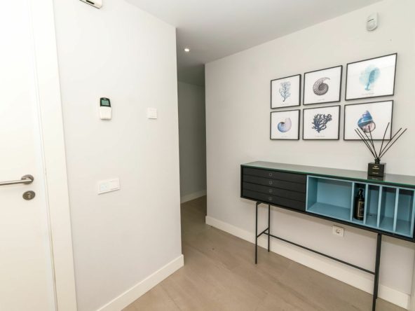 This spacious ground floor apartment offers approx. 121 m² of usable space and features 2 bedrooms, 2 elegant bathrooms, and a minimalist-style open-plan kitchen fully equipped with high-end appliances. The bright and airy living area leads directly to a 17 m² south-facing terrace with panoramic views of the Mediterranean Sea – the perfect spot to relax or enjoy al fresco dining.