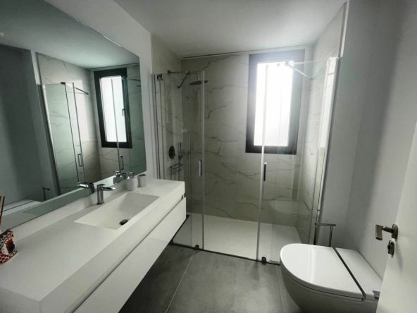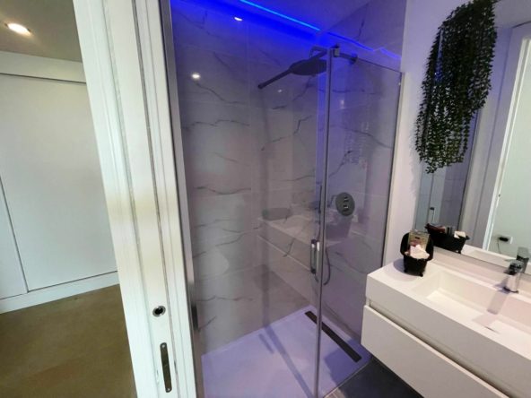 Ground floor apartment in new urbanization, 4 bedrooms, 3 bathrooms, luxurious view of Estepona and the sea, large glazed terrace with access to the lawn. Guaranteed absence of any frontal development. Two parking spaces. Large storage room with direct access from the landing where the elevator and neighboring apartments are located. Full air conditioning, washing machine and dryer. Huge built-in refrigerator and freezer. The kitchen is equipped with a stove with an integrated extractor hood. State-of-the-art plumbing. In the inner patio, there is the possibility to build a private winter garden or an additional bedroom. The complex has a huge pool and a sports complex with modern equipment. South-facing orientation. The living room, kitchen, and two bedrooms open onto the terrace. The other two bedrooms have a view of the patio. The apartment includes a laundry room with a boiler, washing machine, and dryer. Year of construction 2025.