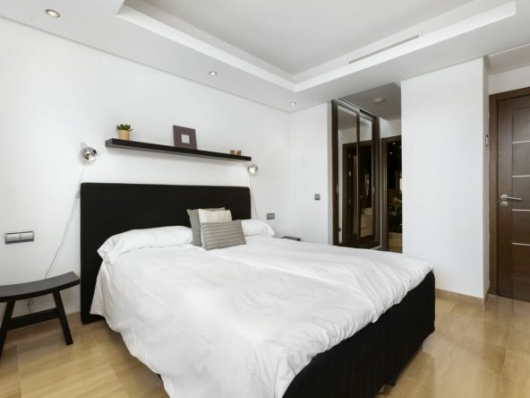 The apartment itself is built to a high standard & comes with underfloor hearting, electric roller shutters, jacuzzi bath and hot and cold air conditioning. The property is distributed with two bedrooms & bathrooms on the lower level with large sitting room leading out to a nice terrace with beautiful sea views, there is an internal staircase that leads up to another large terrace area, the 3rd bedroom & the large rooftop pool that belongs to the apartment. The perfect place for all day sun lovers where you can dip in and out of the privacy of your very own pool.