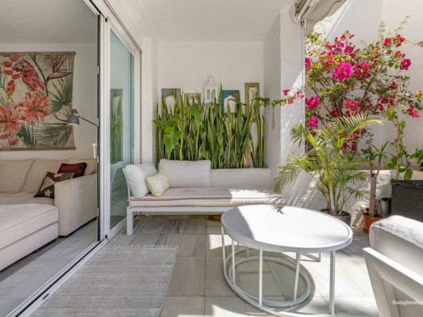 Alcazaba Beach magnificent apartment with large terrace, garden, swimming pool and partial views to the Mediterranean, in exclusive beachfront urbanization, with direct access to the beach, beach bar and restaurant on site, communal parking, 24 hour security, beautiful tropical gardens very well kept, 6 swimming pools (one heated), tennis and paddle courts. It is located on the outskirts of Estepona, with all kinds of services around and only 5 minutes drive from the marina and 10 minutes from Puerto Banus.