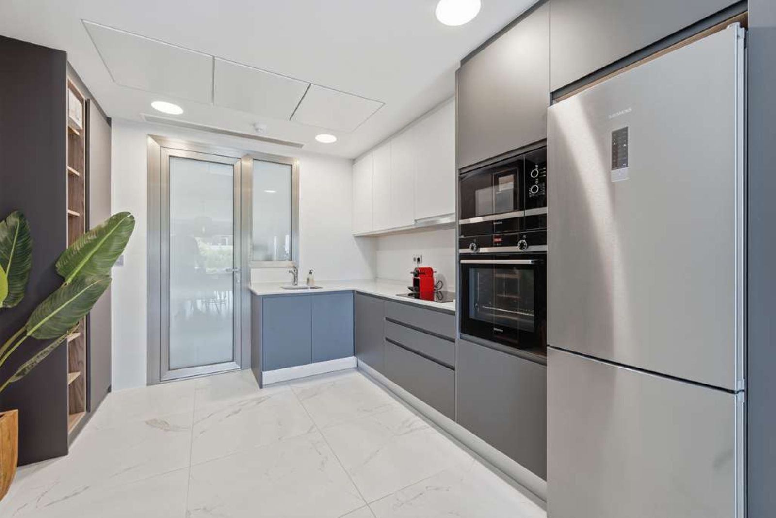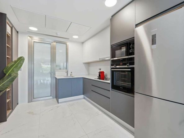 Built in 2020, the Las Mesas urbanisation offers excellent communal facilities, including a large swimming pool, spacious gym, and beautifully maintained gardens. Las Mesas offers excellent connectivity to Estepona’s historic old town and marina, both within walking distance. Nearby are a dog park, sports facilities such as paddle courts and a fitness centre, and shops, all in a peaceful and private setting. Marbella is only 20 minutes away by car, and Málaga Airport can be reached in under an hour via either the A-7 coastal highway or AP-7 highway.
