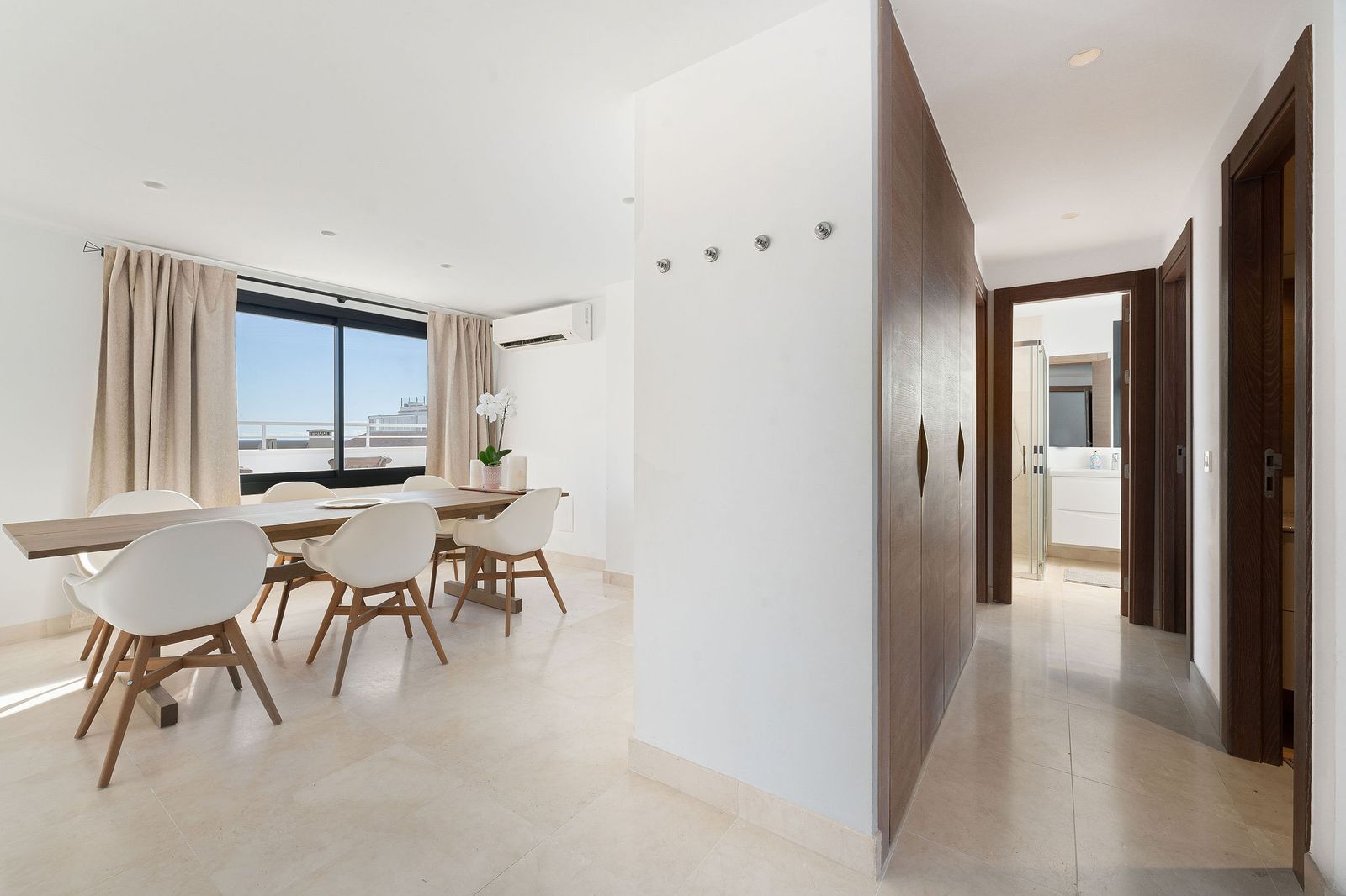 A very special penthouse situated 2nd line to the beach right in the centre of Estepona. The penthouse and terraces occupy the whole of the 6th floor on this building making it one of a kind and very private. The good size living and dining room have access straight out onto the southern part of the terrace with sea views but here comes the beauty, from here you can practically walk around the whole penthouse giving you amazing views in all directions especially over the old town towards the Sierra Bermeja Mountain range. The size of the terrace makes it possible to maximize your outdoor living and at the same time have a change of scenrio when you so desire. This is a truely unique property and has to be seen to be fully appreciated. Please note that the apartment is appr. 100m² constructed plus 187m² of terrace.
