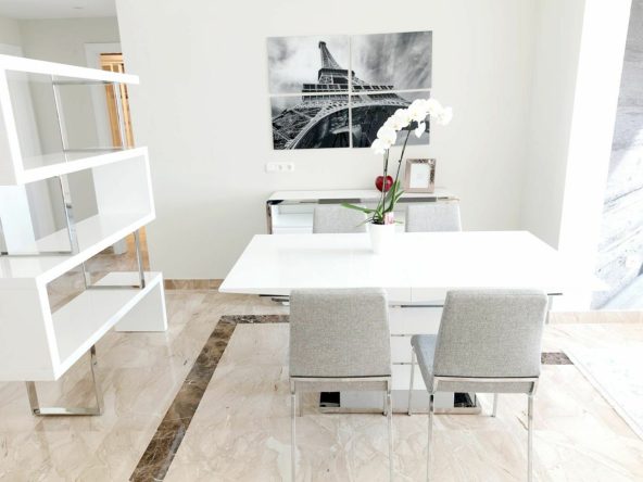 For sale a stylish, fully renovated 3-bedroom penthouse in the prestigious gated community Las Nayades on the New Golden Mile, just a two-minute walk from the beach. The complex offers top-class amenities: 24/7 security, beautifully maintained tropical gardens, an outdoor pool, heated indoor pool, gym and sauna. The promenade with shops, cafés and restaurants is right nearby.