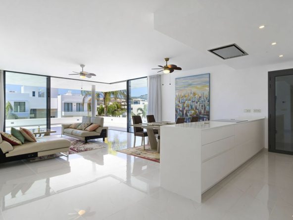 * An important feature are the floor to ceiling sliding windows which create a smooth transition of the living room into the extensive terrace area, perfect for maximum enjoyment of the Mediterranean climate and creating lots of extra living space, chillout area, outdoor dining area….