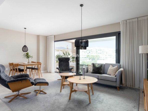 Featuring 146m² of beautifully designed interior space and 150m² of sun-drenched terraces, this home is built for those who value light, space, and style. The open-plan kitchen and living area flow seamlessly onto a 57m² main terrace that connects directly with the living room and bedrooms — all enjoying stunning panoramic views over the Mediterranean and the city of Estepona.