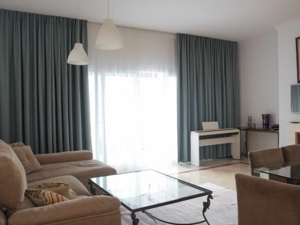The first apartment features 3 bedrooms, 2 bathrooms, a fireplace lounge, and a spacious terrace with breathtaking sea views. Total area: 141 m².
