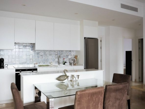 The gated community offers 24-hour security, a heated indoor pool, 7 outdoor swimming pools, a gym, sauna, children’s playground, coworking area and restaurant on site.