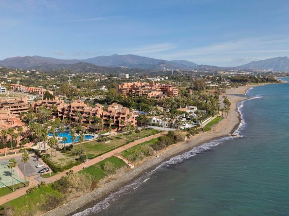 This exceptional two-bedroom garden apartment is situated frontline to the sea within the prestigious Mar Azul Resort, one of Estepona’s most sought-after gated developments. The property enjoys direct access to the beach and is conveniently located within walking distance of local amenities and Estepona Old Town, with Marbella easily accessible.