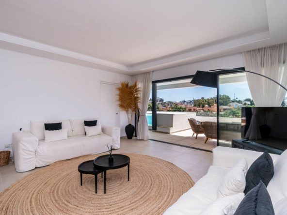 Luxurious apartment in El Campanario Hills, located in a gated community with just 29 units. The property is near to prestigious golf courses and beaches, with easy access to Marbella and Estepona via the A7.