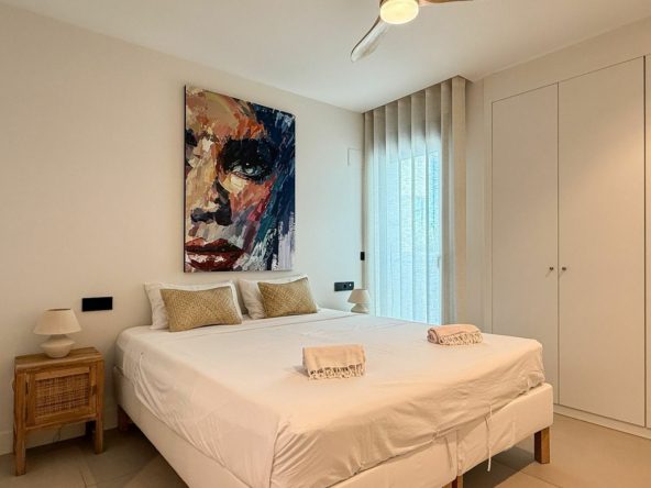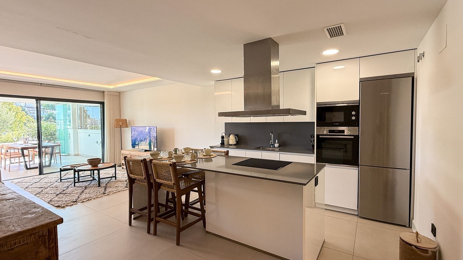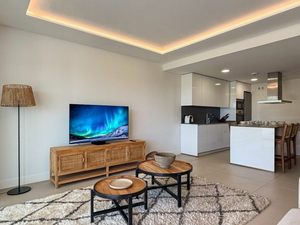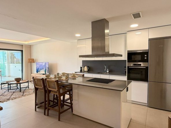 Offering 2 bedrooms and 2 bathrooms. The main bedroom has an open plan bathroom with walk-in shower, anti-fog mirrors, electric towel racks and extra wardrobes. A fully equipped and open plan kitchen with all Bosch appliances and spacious living dining area.
