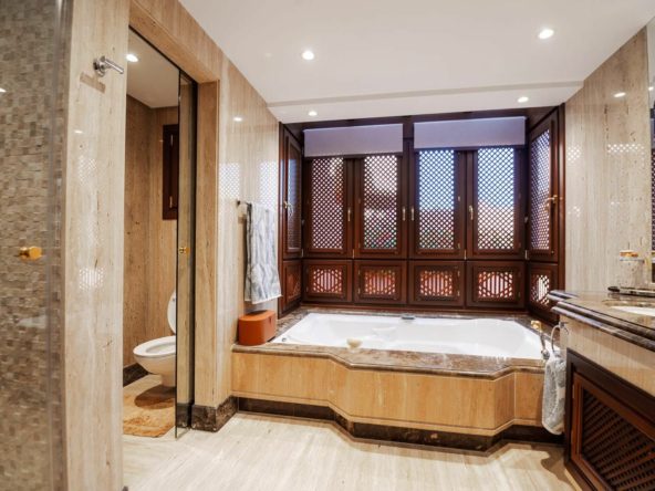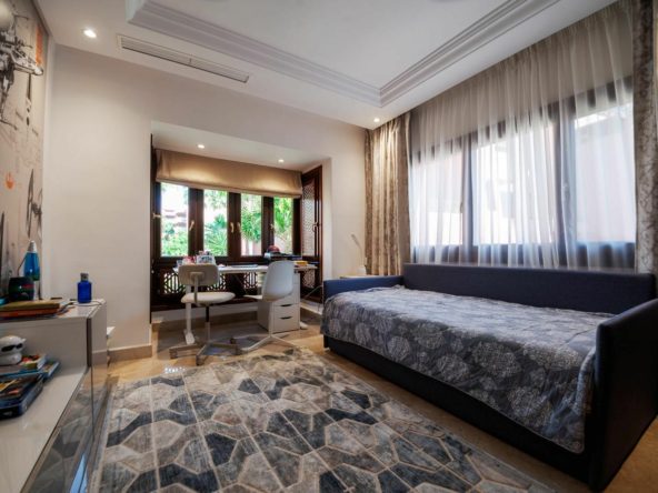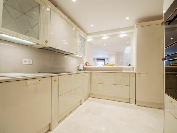 The interior of this duplex penthouse unfolds over 210m² of elegantly appointed space. The inclusion of a fully fitted kitchen and separate equipped kitchen ensures culinary enthusiasts are well catered to. Furthermore, the living and dining rooms create seamless integration for entertaining guests or enjoying intimate family dinners. Luxury is further accentuated by underfloor heating throughout the property and a sophisticated home automation system that tailors the environment to one’s desires.