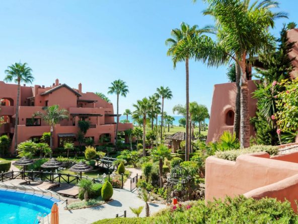 Set against the stunning backdrop of the Mediterranean Sea, this luxury duplex penthouse in Torre Bermeja, Estepona East, encapsulates the essence of refined coastal living. Boasting an expansive 395m² total built space, this property features three spacious bedrooms, each complemented by en-suite bathrooms, offering unparalleled convenience and privacy for its residents. The property’s front-line beach position grants direct sea access and delightful views, immersing one in the tranquil sounds of the waves.