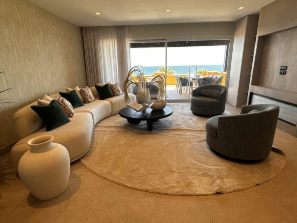 This Front Line Beach Apartment presents itself as one of the most exclusive urbanisations on the **New Golden Mile** and combines luxurious living comfort with a spectacular location directly on the Mediterranean Sea.