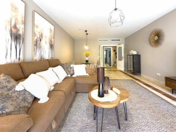 Discover true peace and elegance with this stunning ground-floor apartment in the prestigious Benatalaya complex. Bright, spacious, and beautifully furnished (furniture inclusive!), it offers an inviting open-plan living and dining area with direct access to your private terrace and garden, a perfect spot to relax, entertain, or simply enjoy the tranquility. This home features three en-suite bedrooms, a fully equipped modern kitchen with laundry area, plus the convenience of two parking spaces and a large storage room. And yes, it comes furnished, ready for you to move in. Life at Benatalaya is all about wellness and comfort. Residents enjoy 5 swimming pools (including 1 indoor heated pool), a fully equipped gym, spa, sauna, and lush tropical gardens. It’s so peaceful here, you’ll hear nothing but nature. For golf lovers, this property offers something truly unique: direct access to Atalaya Golf, and with your purchase, you’ll even become a shareholder of the Atalaya Golf & Country Club. Practicality meets investment security: the community has already approved the Tourist Licence, giving you the flexibility of high rental potential alongside the perfect holiday or permanent home. Located just minutes from Puerto Banús, Marbella, and Estepona, and surrounded by international schools and world-class golf courses, this property is a rare opportunity to combine lifestyle, luxury, and smart investment.