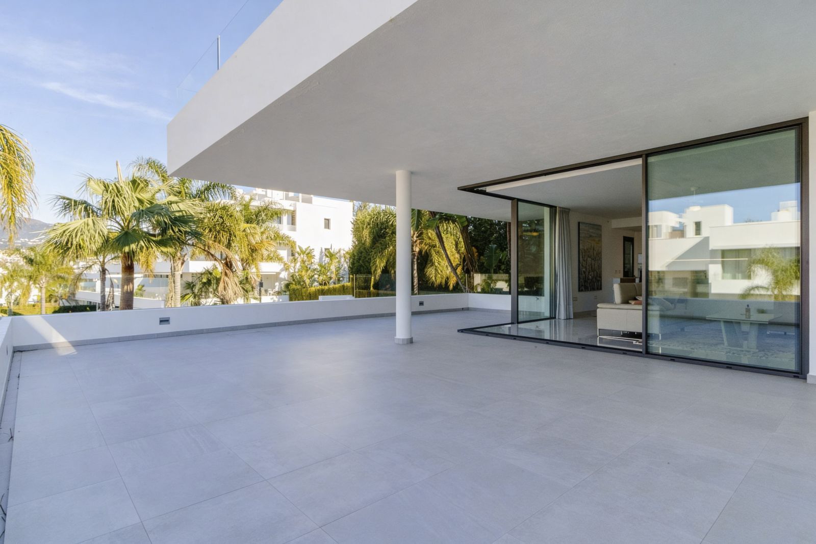 * An important feature are the floor to ceiling sliding windows which create a smooth transition of the living room into the extensive terrace area, perfect for maximum enjoyment of the Mediterranean climate and creating lots of extra living space, chillout area, outdoor dining area….