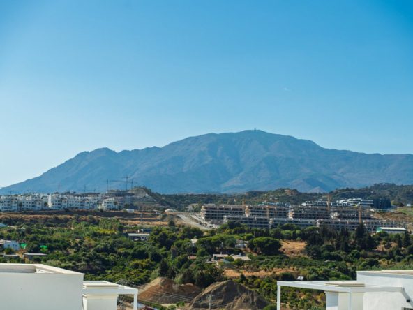 Discover this stunning second-floor duplex penthouse, offering breathtaking panoramic views of the sea and mountains. The home features a spacious living room terrace and a rooftop terrace with a private solarium and elegant white pergola, perfect for enjoying the Mediterranean sun in complete privacy.