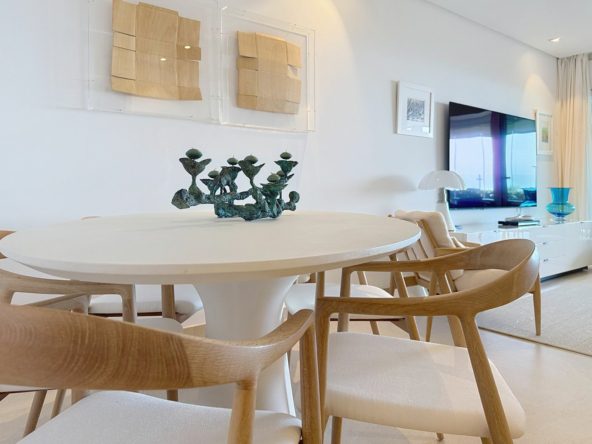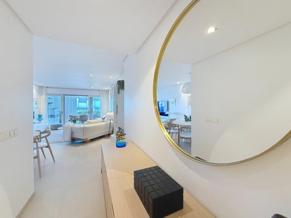 With a very frontline beach location and direct access to the promenade, this elegant two-bedroom apartment is part of Doncella Beach, one of Estepona’s most prestigious seafront developments. It enjoys uninterrupted views of the Mediterranean and a privileged setting beside Playa del Cristo, within walking distance of the marina and town centre. Designed with exceptional build quality and modern sophistication, the property offers a perfect blend of comfort, exclusivity, and the relaxed elegance of coastal living.