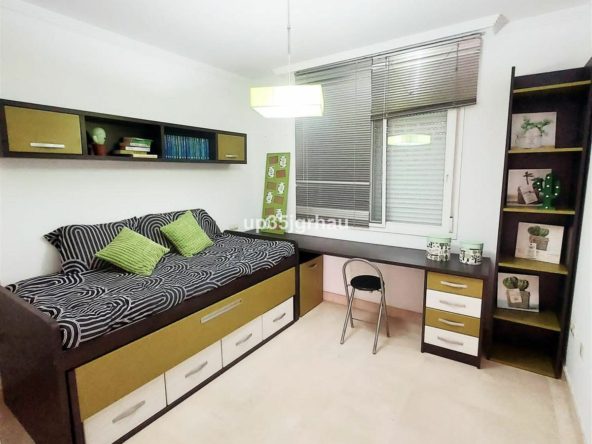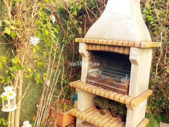 It has 2 large bedrooms with fitted wardrobes, 2 full bathrooms, equipped kitchen and laundry room, large private covered terrace, 70m2 private garden with mini pool and barbecue.