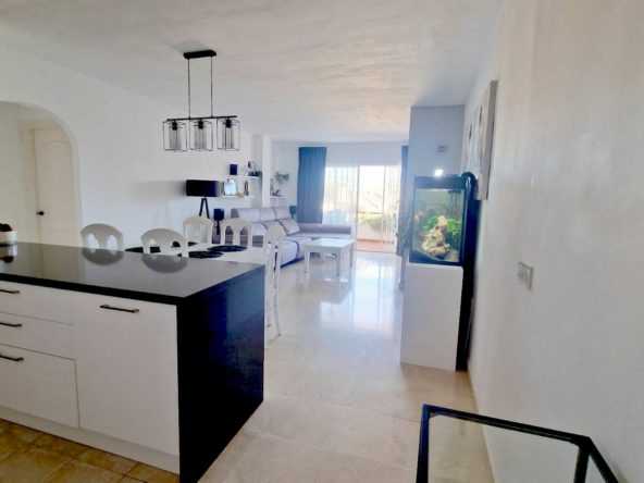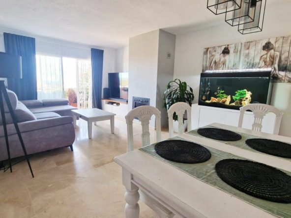 The apartment is part of a gated community with a swimming pool and landscaped communal gardens, perfect for enjoying the Mediterranean climate. Its proximity to schools, restaurants, and Estepona town center makes it an attractive option for both families and professionals.