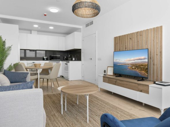 Experience elevated city living in this exceptional 24th-floor apartment in one of Málaga’s most exciting new residential developments. Perfectly positioned in the heart of the city, this sleek and modern home offers spectacular panoramic views over the city skyline, mountains, and Malaga football stadium. The layout includes a spacious living and dining area, a fully fitted modern kitchen, two bedrooms and two bathrooms, one en-suite. The apartment is presented as brand new, fully furnished and has never been lived in or rented out.