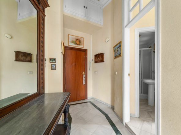 The apartment preserves the stately character typical of historic city-centre buildings, with ceilings over three metres high that provide a remarkable sense of space, elegance, and openness. The abundant natural light, combined with its south-facing orientation, creates bright, airy, and welcoming living spaces throughout the day.