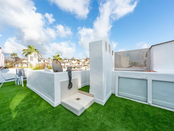 Upstairs, a magnificent private solarium offers an exclusive space to enjoy the Mediterranean lifestyle, with open views of the sea and the gardens of the complex. It's an ideal place to relax, sunbathe, or create a chill-out atmosphere in complete privacy.