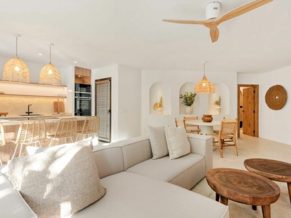 The property perfectly combines design, comfort and functionality, with open spaces, contemporary materials and carefully selected décor. From the living room, you have direct access to a lovely outdoor area, ideal for al fresco dining, relaxing or enjoying time with family, all surrounded by well-kept communal gardens.